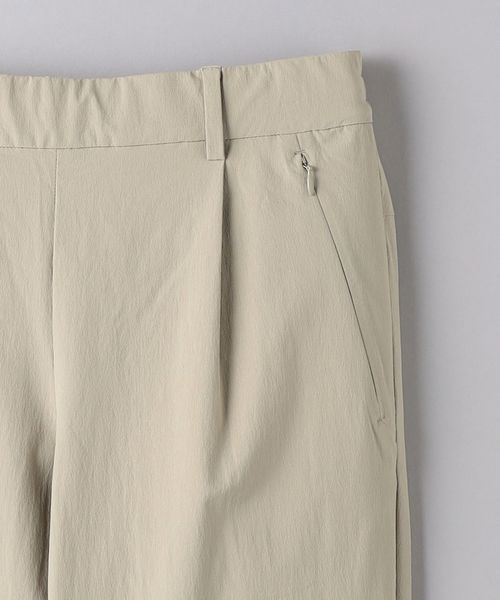 1プリースの程よいゆとりのある腰回りとギャザー、ドローコード仕様のウエストでフィット感の良さもポイント。