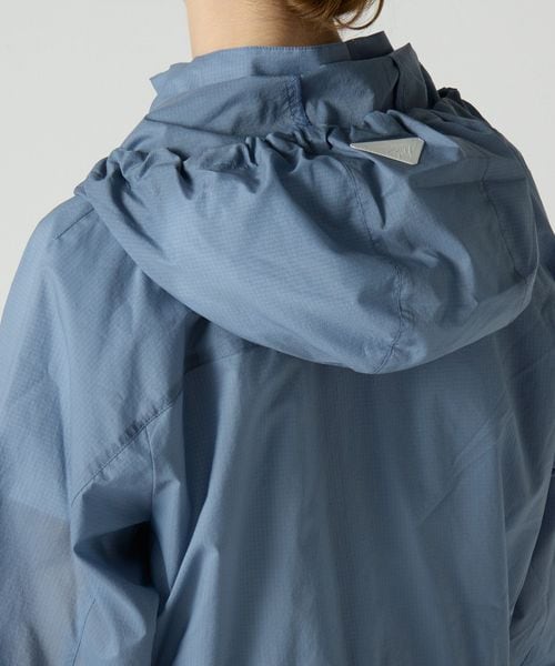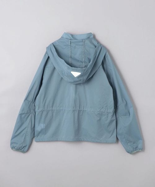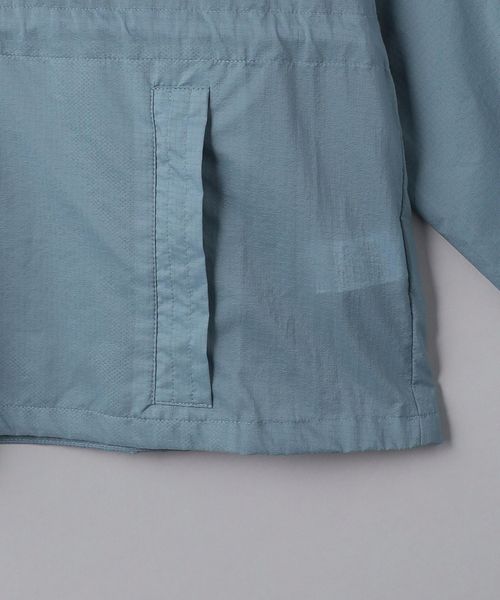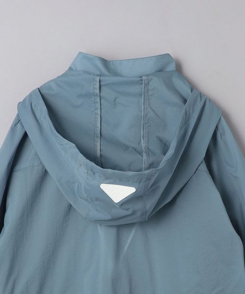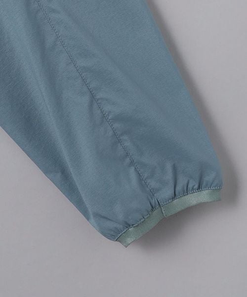 袖の動きやすさを考慮した切り替えデザインのハーフジップパーカ。
