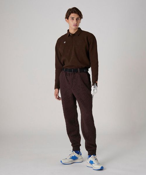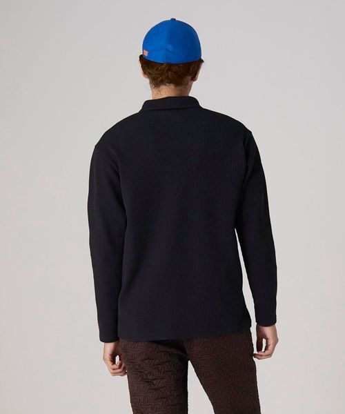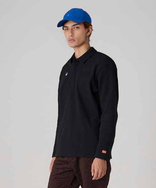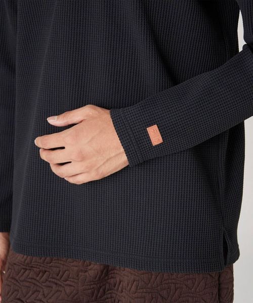 凹凸のあるワッフル生地を使用した、シンプルなデザインのラガーシャツ。