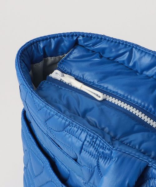 全面にメタルTのキルトパターンを施した鮮やかなロイヤルブルーのトートバッグ。