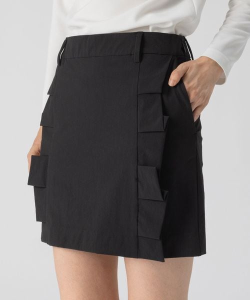 全方位ストレッチ素材を使用し、エレガントなフリルのデザインが特徴的なスカート。