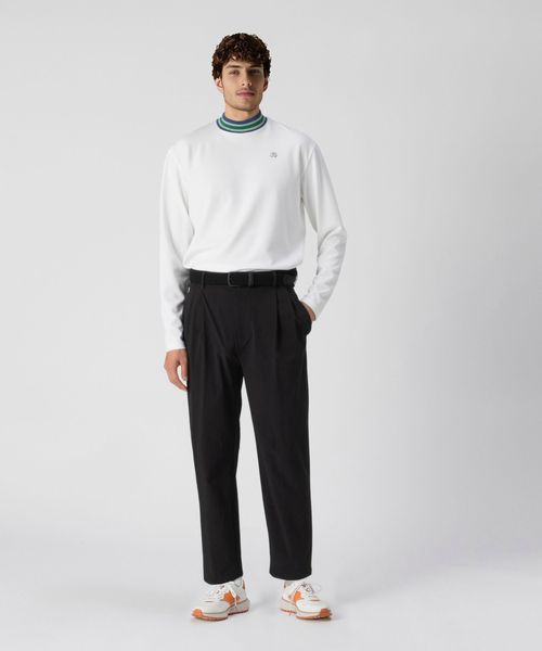 首元のスポーティなラインがポイントになったモックネックミドラー。