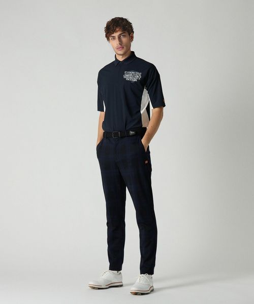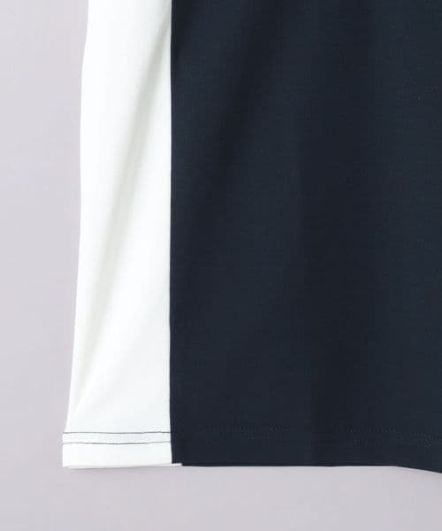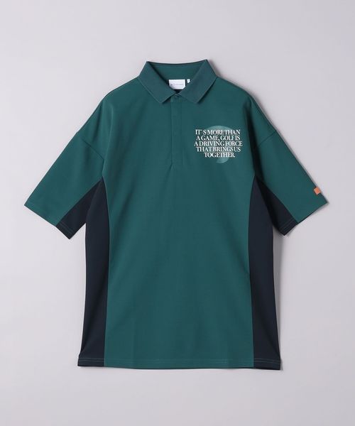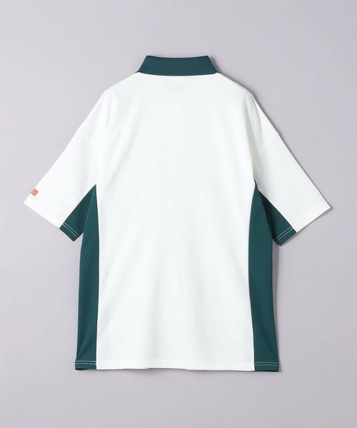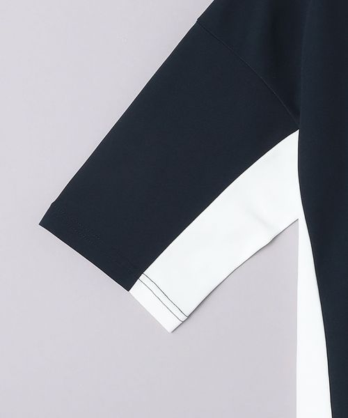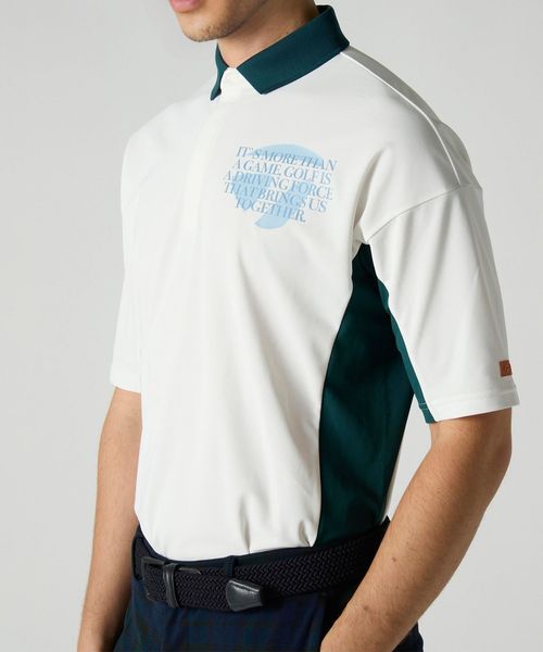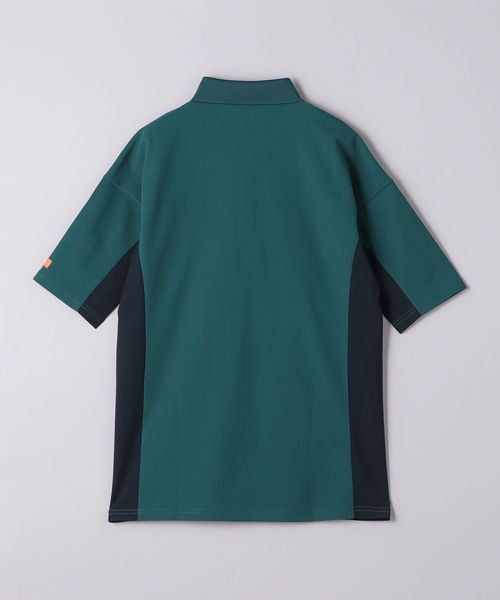 フロントとサイドでカラーが異なるバイカラーデザインのショートスリーブポロシャツ。