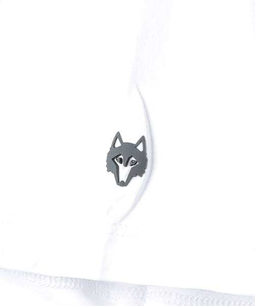 右袖のウルフロゴと、衿内側、裾スリット部の切り替えがアクセントとして効いています。