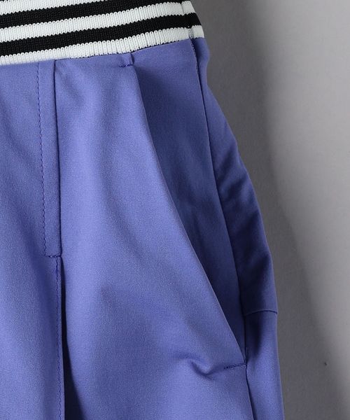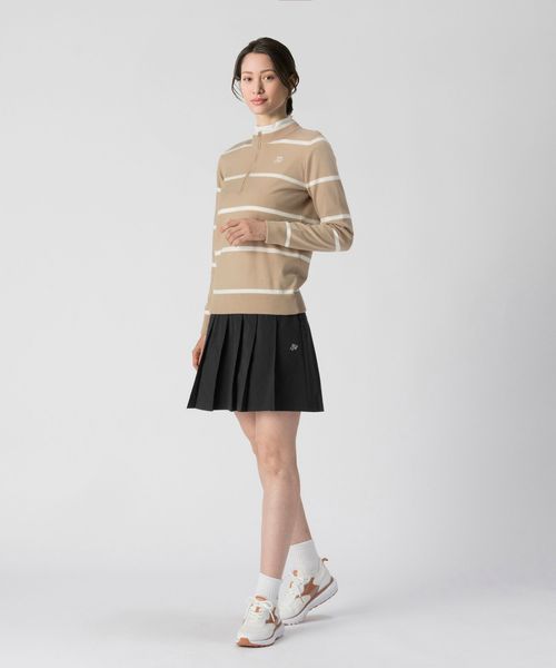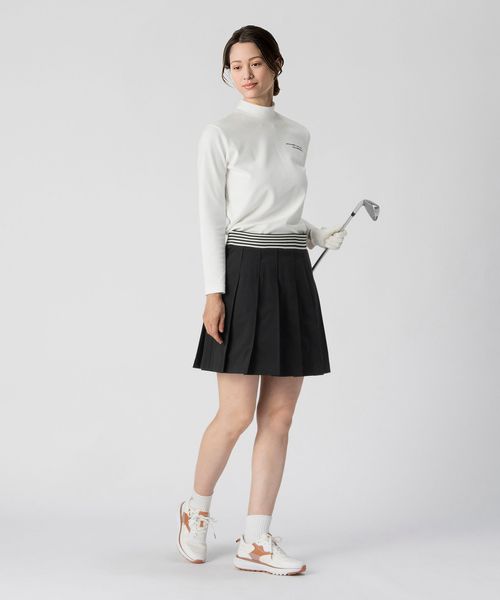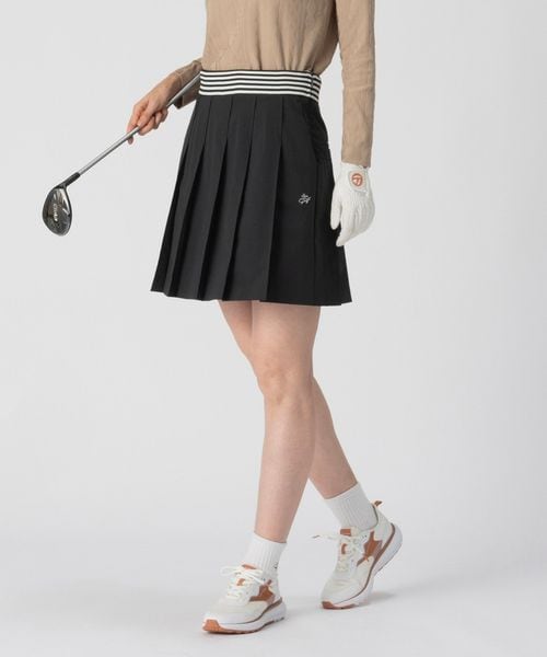 ウエスト部分にボーダー柄のゴムを配し、スポーティかつエレガントな印象のフリルスカート。