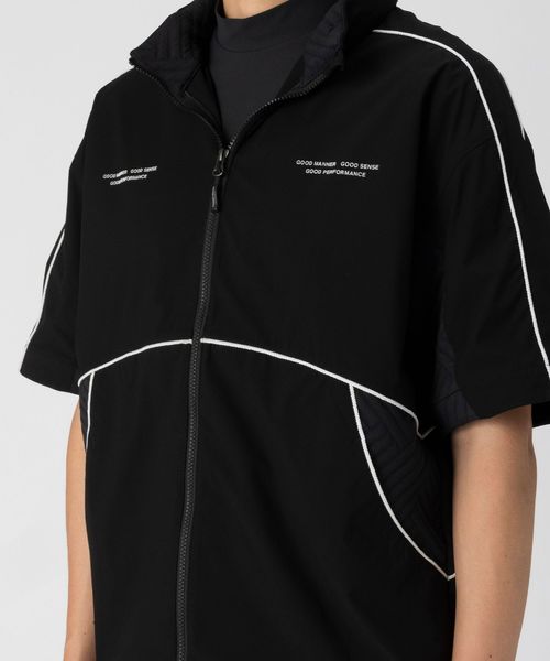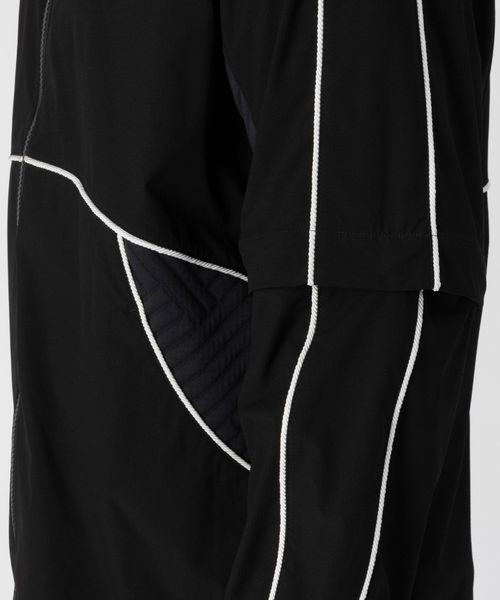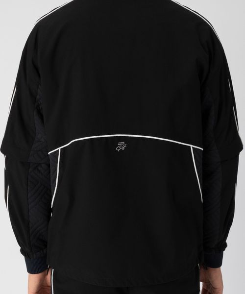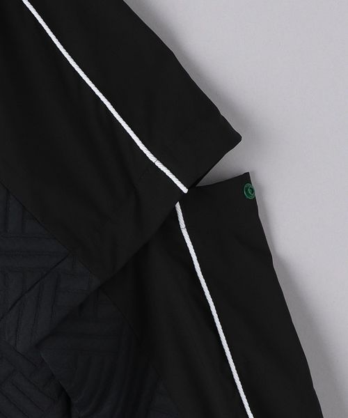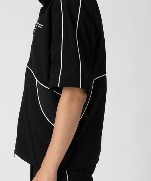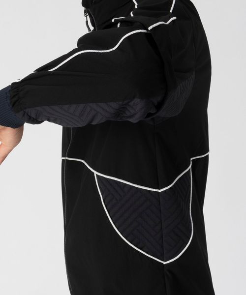カーブデザインのパイピングと、脇・袖下の切り替えがスポーティかつ洗練された印象です。