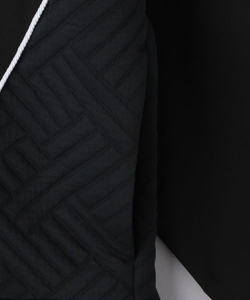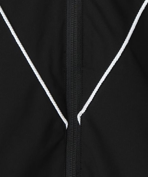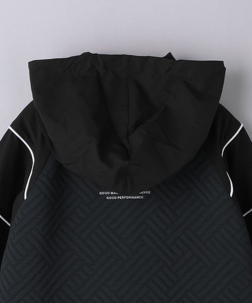 大胆なパイピングで描かれたVデザインが特徴で、フードは脱着可能です。