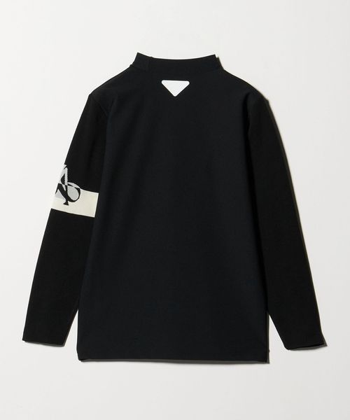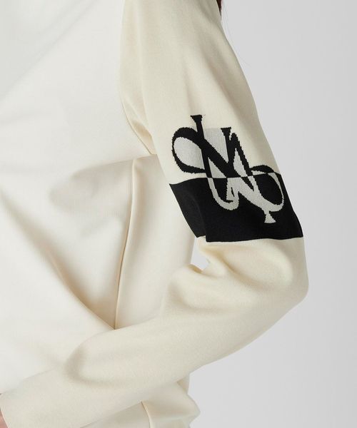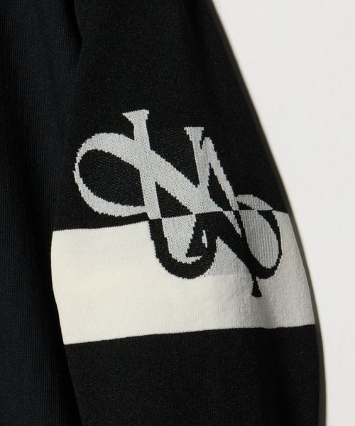 左袖にジャガードで施した変形デザインのロゴがアクセントとして効いています。