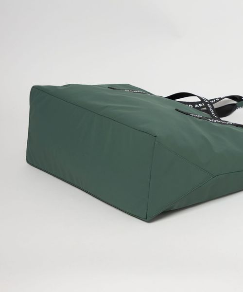 ウェービングベルトにブランドロゴを配した、スポーティなデザインのトートバッグ。