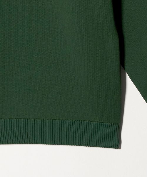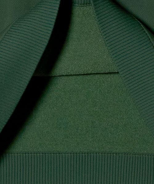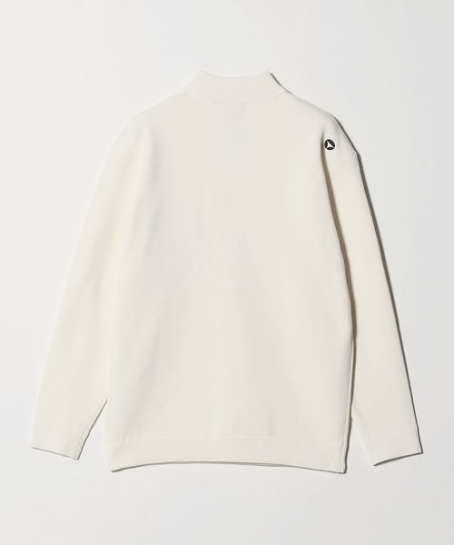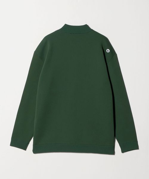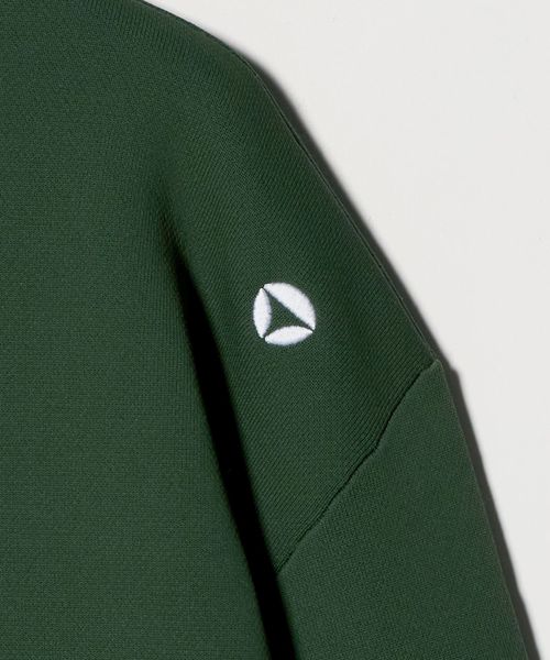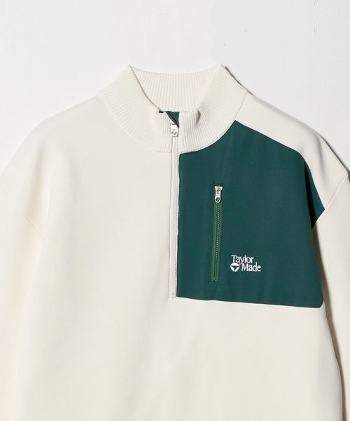 フロント部分の切り替えによるアシンメトリーなデザインのハーフジッププルオーバー。