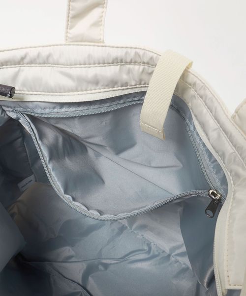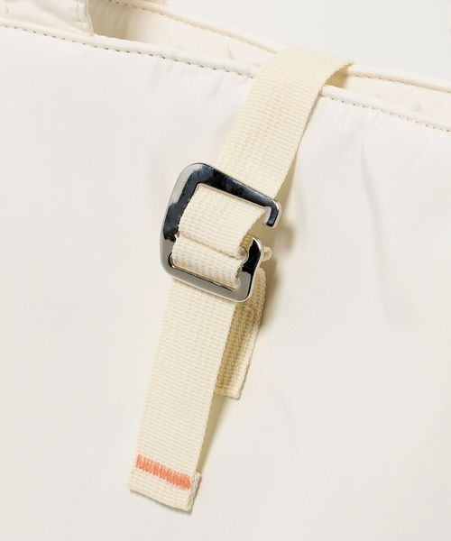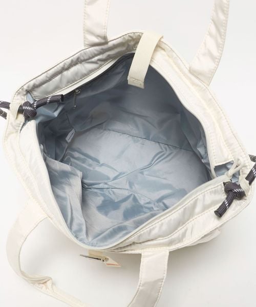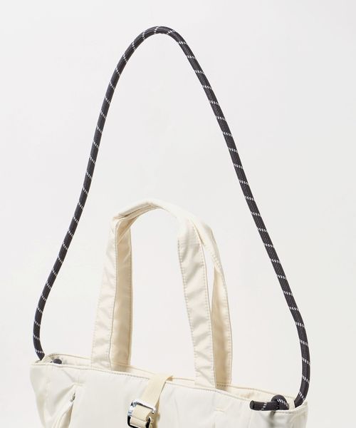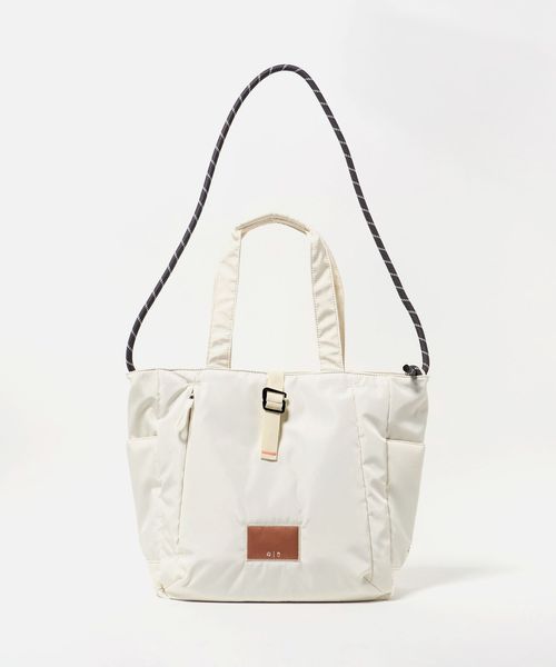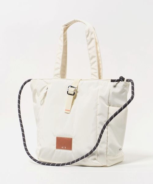 ハンドル部分にロゴを配したデザインが特徴的なトートバッグ。