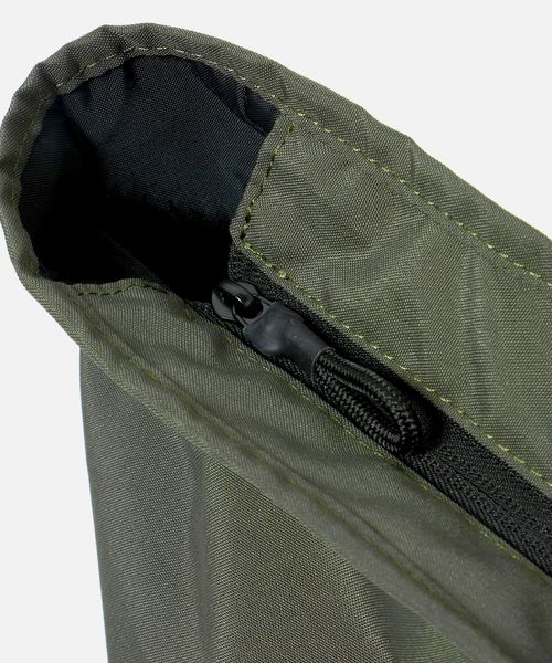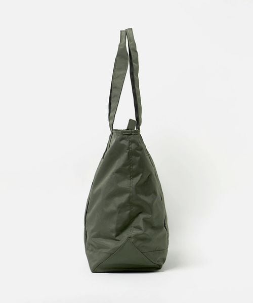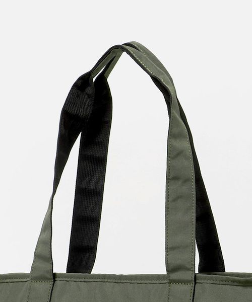 落ち着きのあるカーキカラーに大きなヘリテージロゴが映えるトートバッグ。