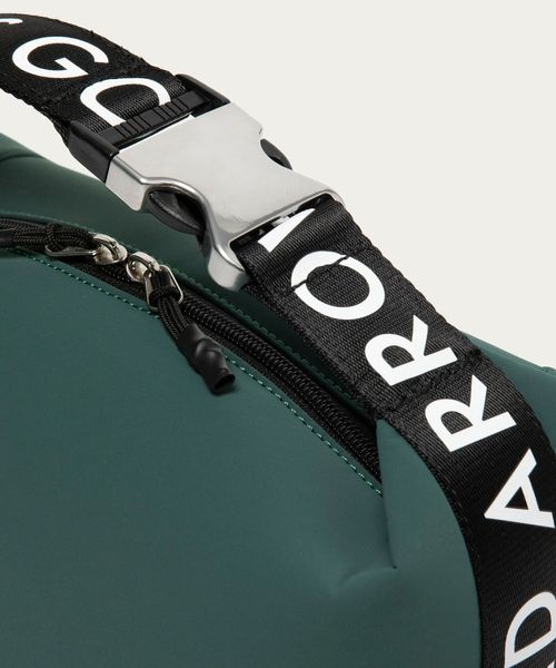 ウェービングベルトに大胆なロゴを配したポーチ。