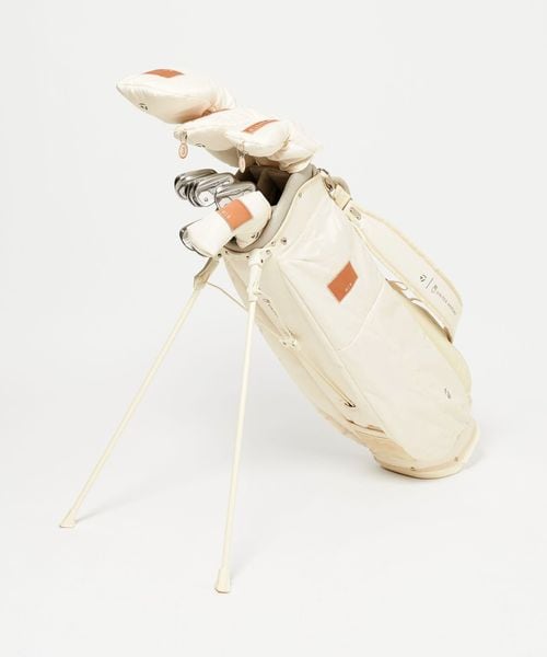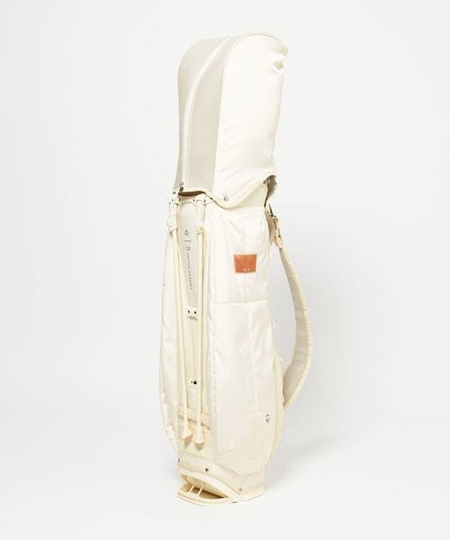 アパレルやアクセサリーを収納できるサイズ違いのポケットを左右に配置し、ボトム一体型のスタンドを採用した、デザイン性と機能性を兼ね備えたキャディバッグです。
