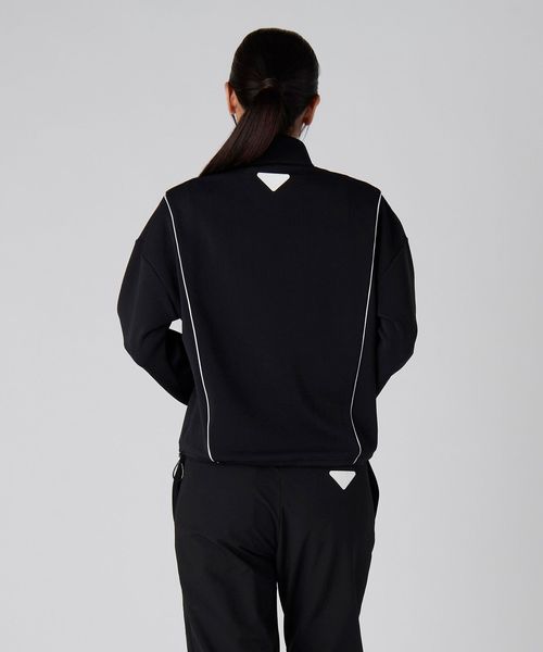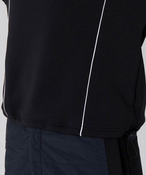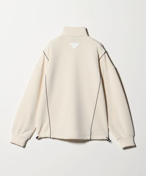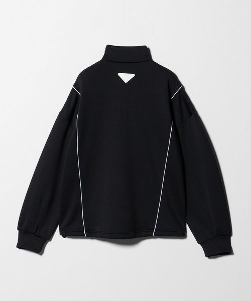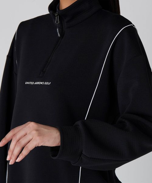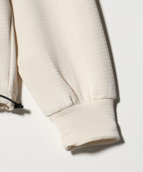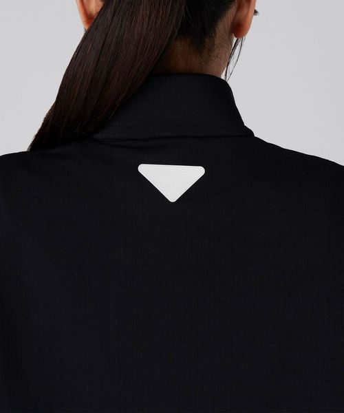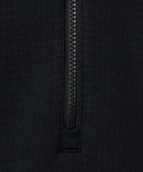 細かい凹凸のあるグリッド(格子状)素材を使用した、ハーフジップ仕様のミドラートップス。