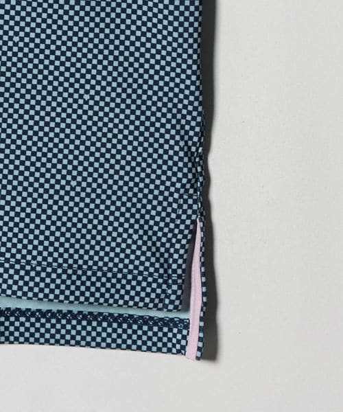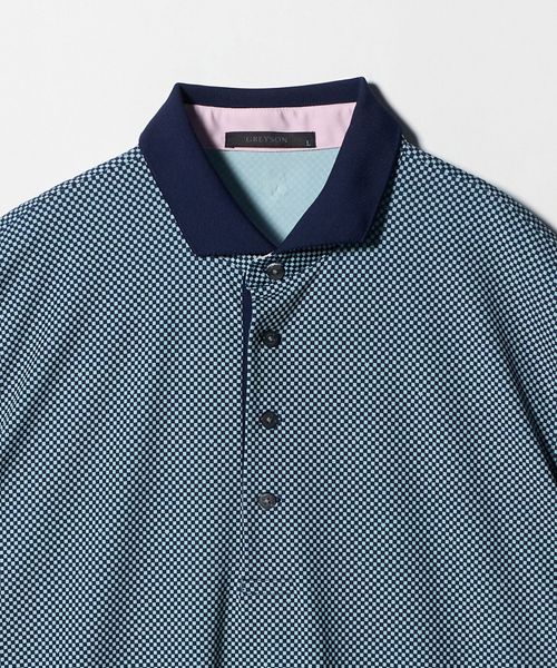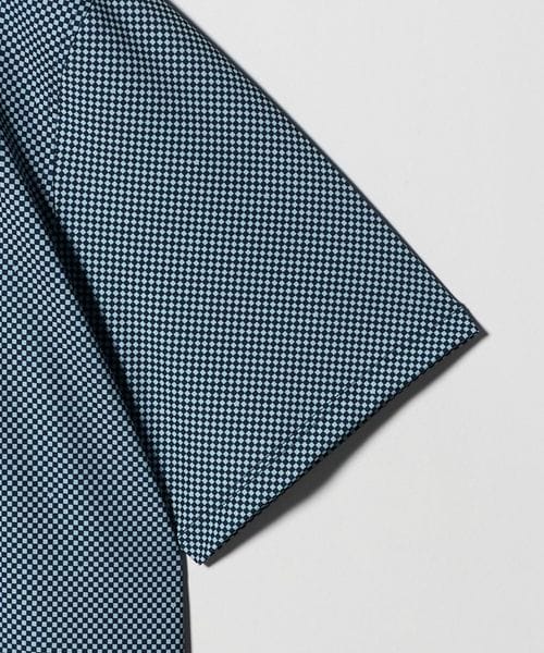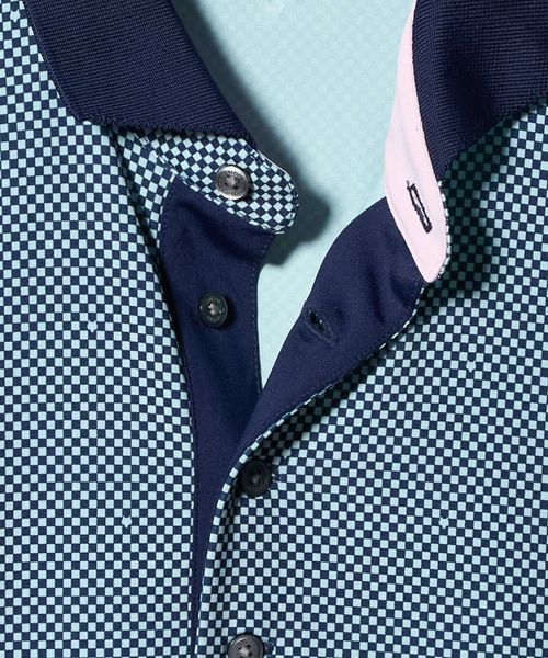 細かいチェック柄を全面に配したデザインのショートスリーブポロシャツ。