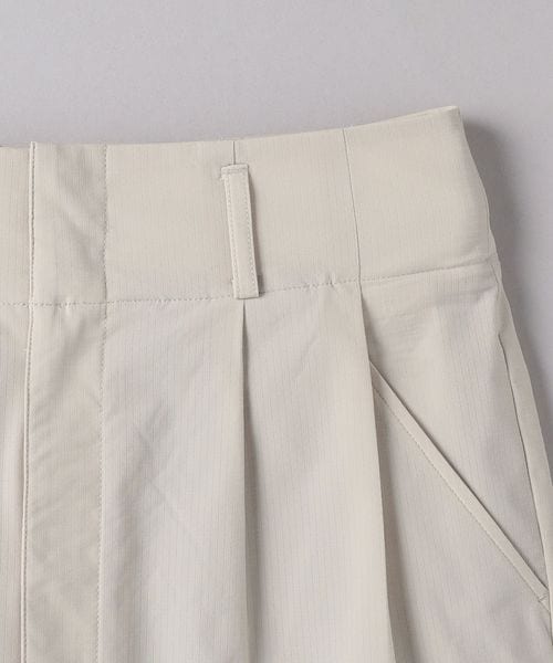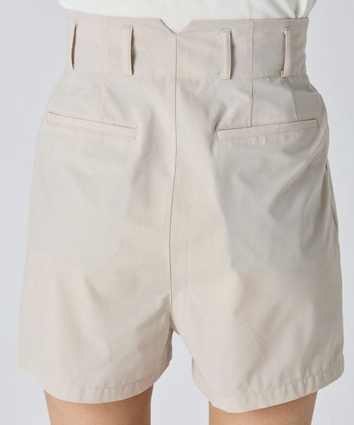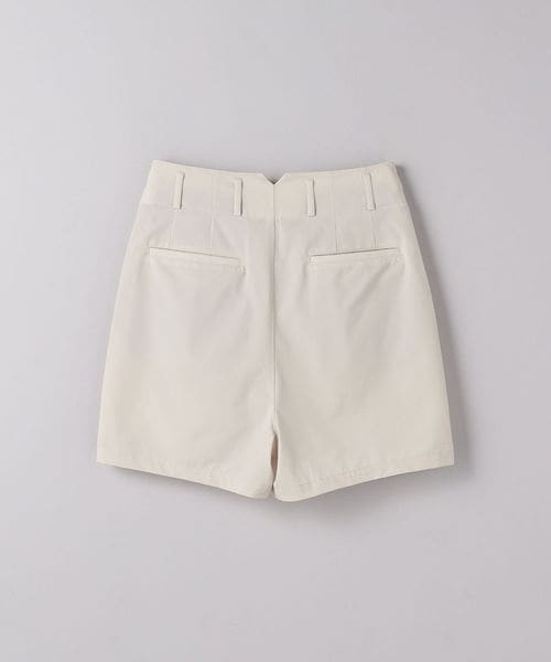 フロントにタックを配した立体感のあるシルエットで、マニッシュなテイストが新鮮なハイウエストデザインショートパンツ。
