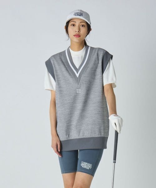 裾のメッセージロゴがデザインのポイントになっており、アクティブなシーンをおしゃれに彩るアイテムです。