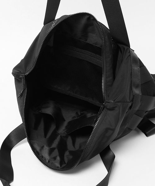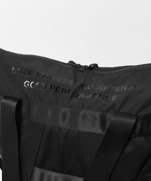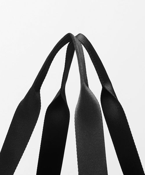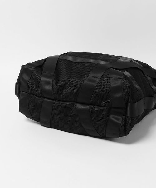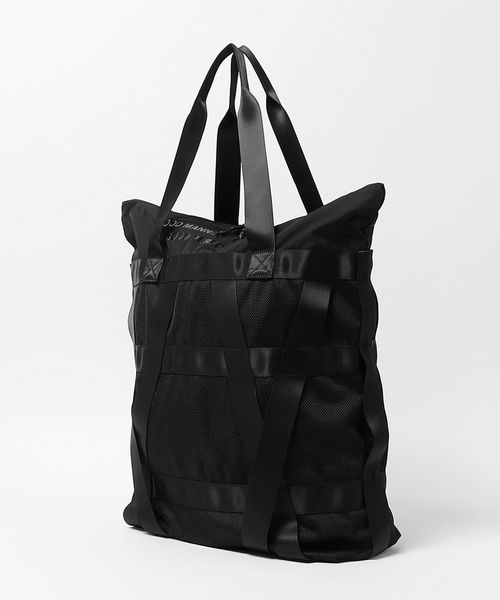 フロントにブランドコンセプトをさりげなく同色で施したメッシュ素材のトートバッグ。