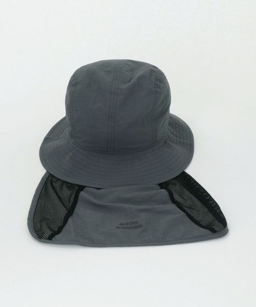 背面に取り外し可能なシェードをつけ首元の日よけを防止するデザインが特徴です。