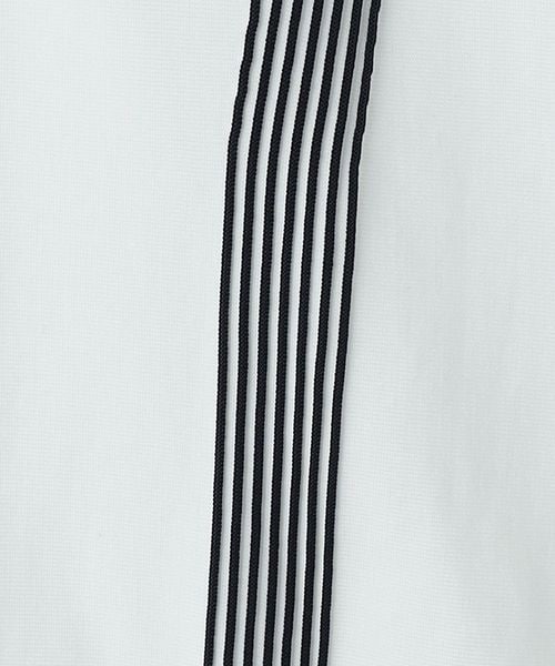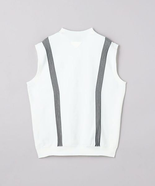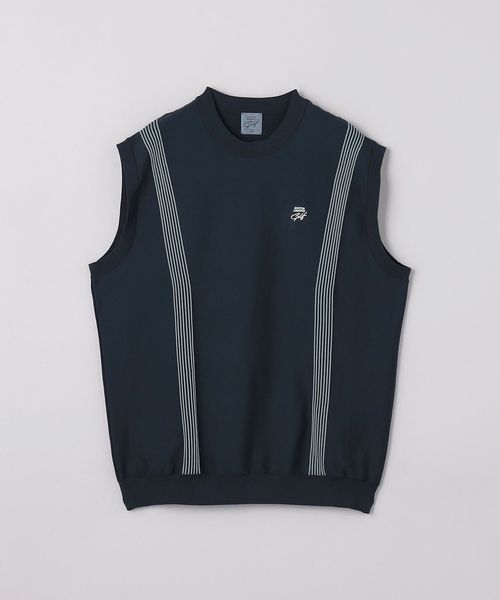 両肩から裾にかけ特徴的なラインデザインのクルーネックベスト