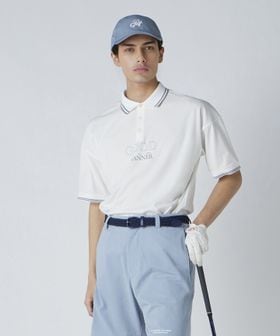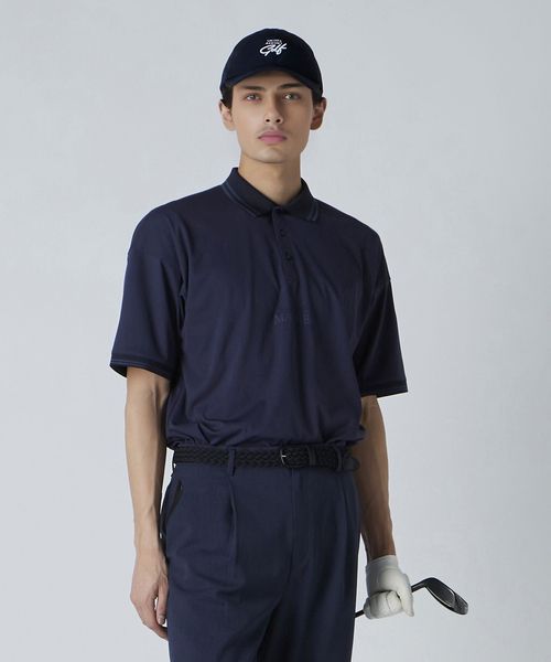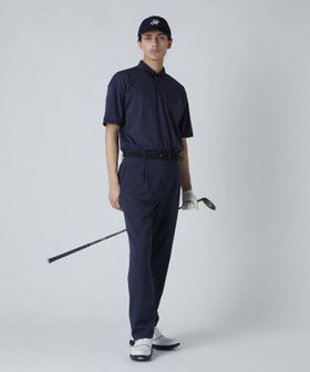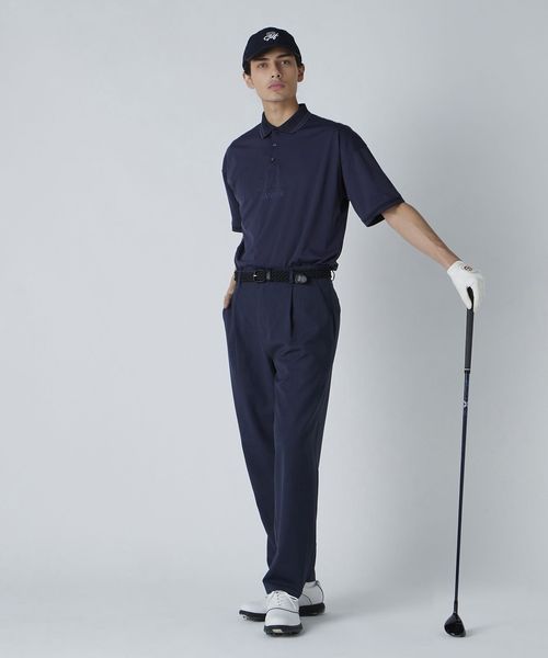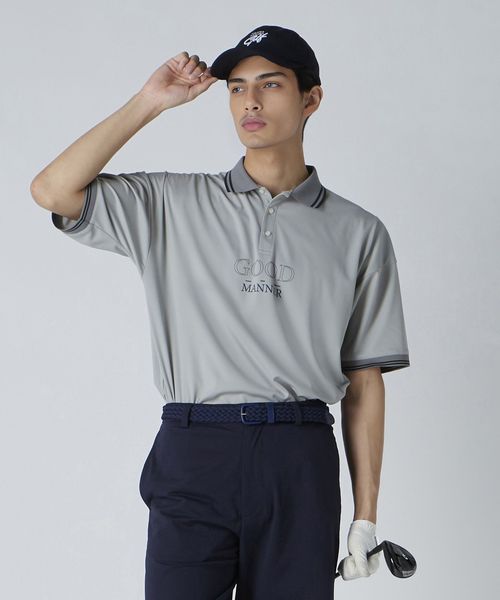 ゴルフシーンでのパフォーマンスを考えた、スプリットラグランスリーブにジャストルーズシルエットのポロシャツ。