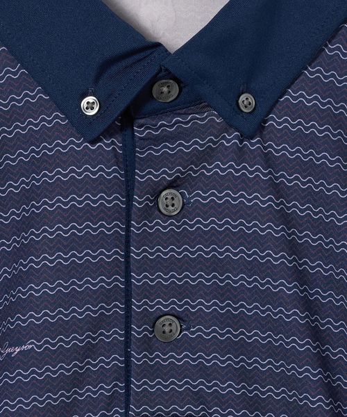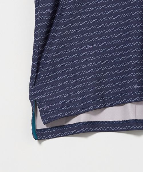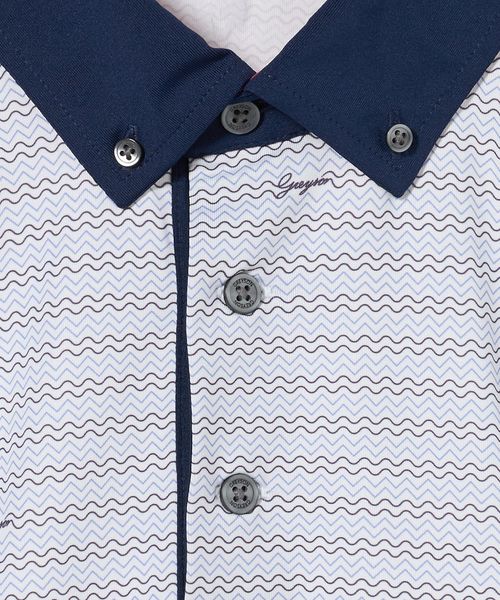 幾何学的なラインとミニマルなグレイソンロゴを散りばめたデザインのポロシャツ。