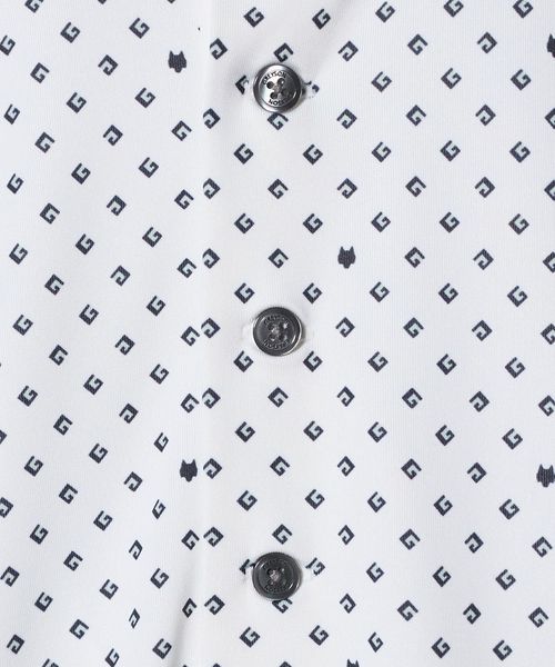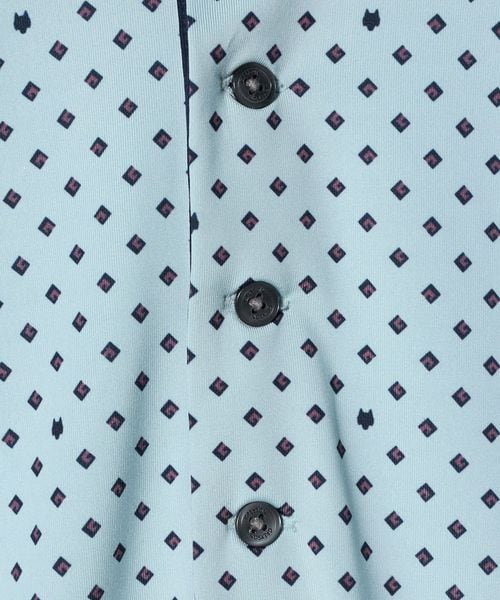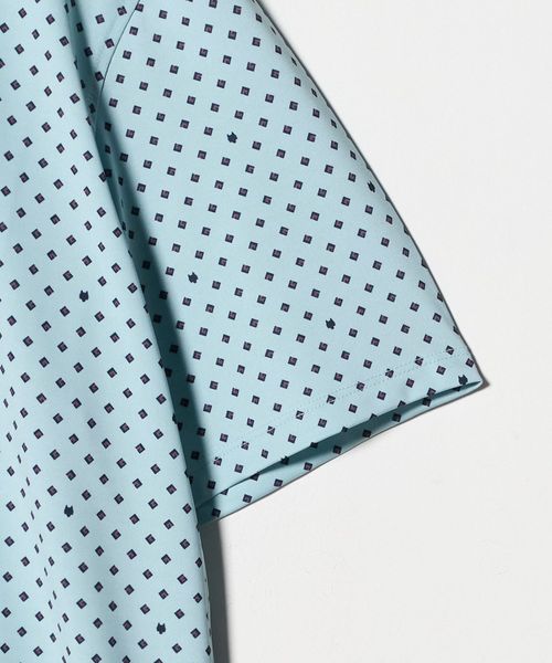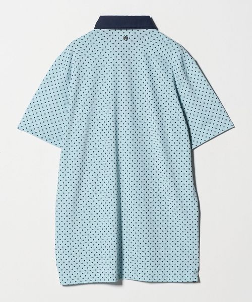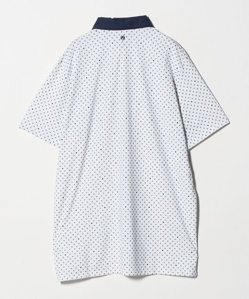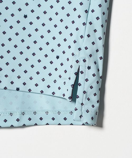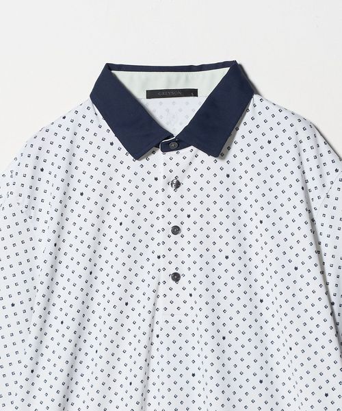 幾何学的な柄を全面に配したデザインのショートスリーブポロシャツ。