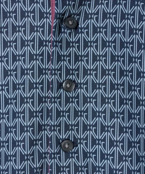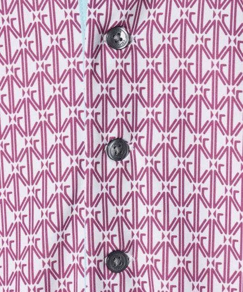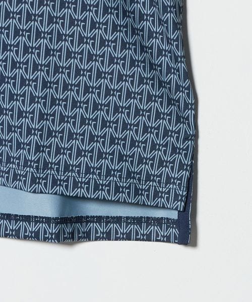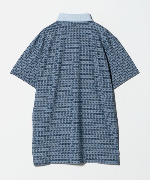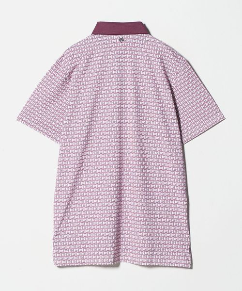 幾何学的なモノグラムを全面に配したデザインのショートスリーブポロシャツ。