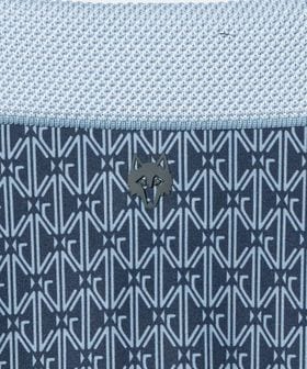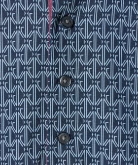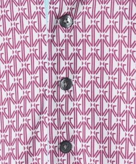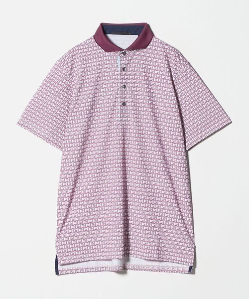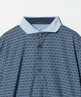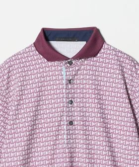幾何学的なモノグラムを全面に配したデザインのショートスリーブポロシャツ。
