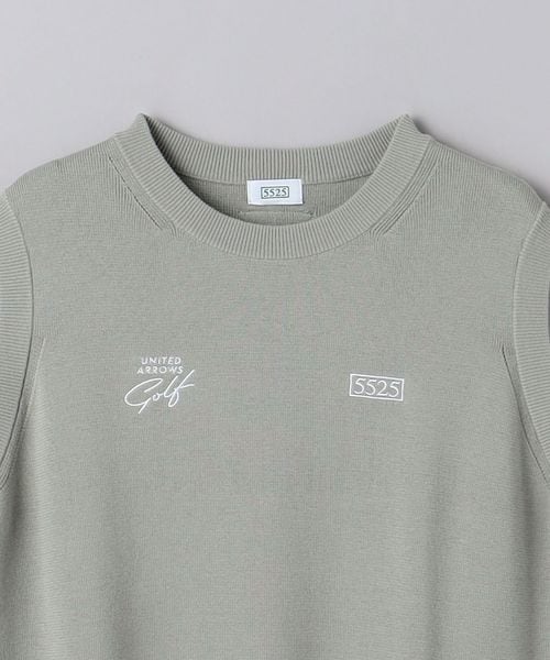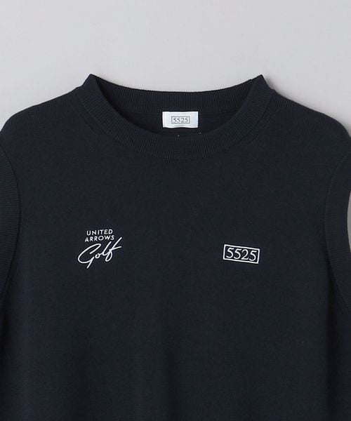 胸元に両ブランドロゴを配置し、背面上部に<ユナイテッドアローズ ゴルフ>のロゴマークを<5525>を象徴するグリーンカラーのシリコンマークに変更した別注デザインのクルーネックニットベスト。
