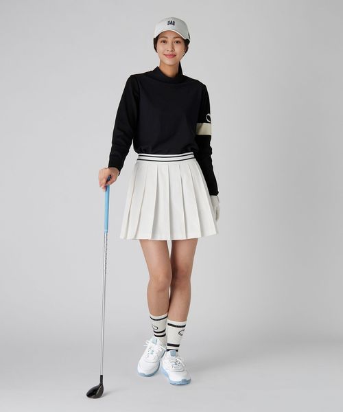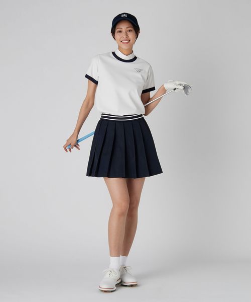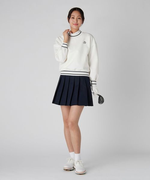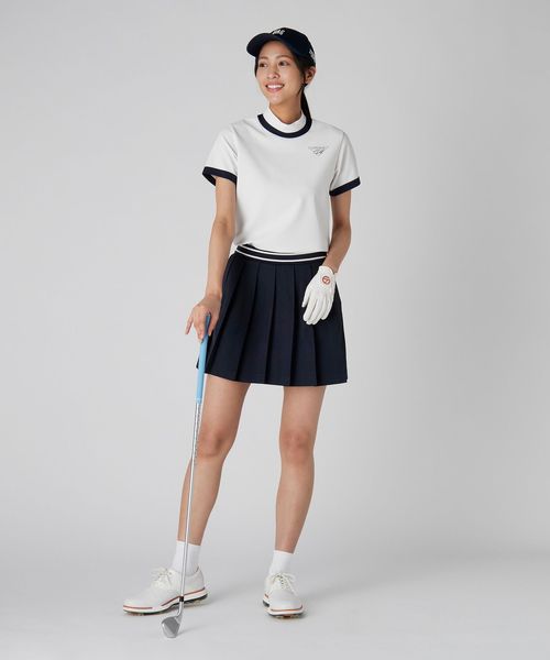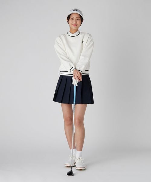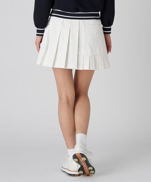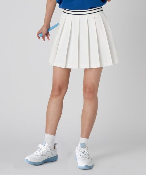 ウエストにラインデザインのリブをあしらい、クラブスポーツのエッセンスを感じさせるプリーツスカート。