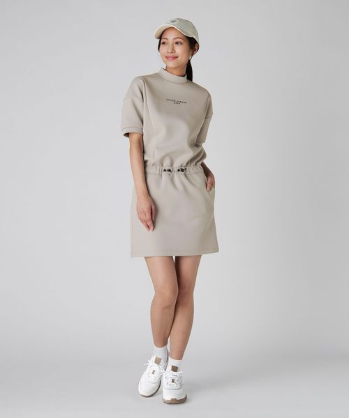 ブランドロゴ入りのジャガードゴムをウエスト部分に配し、程よいフィット感とデザイン性を両立したモックネックワンピース。