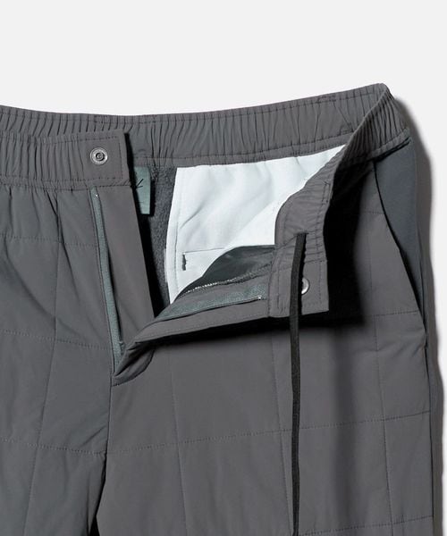 前身に軽量でハリ感のある機能素材を使用し、中綿キルティングを施したハイブリッドジョガーパンツ。
