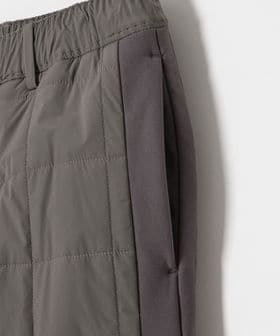 前身に軽量でハリ感のある機能素材を使用し、中綿キルティングを施したハイブリッドジョガーパンツ。