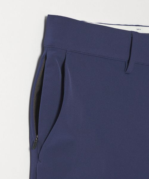 ラウンド時はもちろん、クラブハウスのジャケットシーンや上品なカジュアルスタイルにもマッチする、オン・オフ対応の万能ボトムスです。