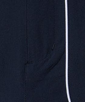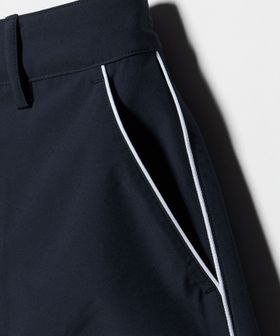 パイピングデザインが特徴的で両ポケット下部にミニブランドロゴが配置されています。