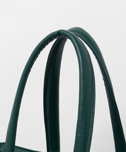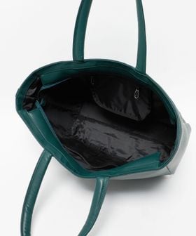 シックなグリーンカラーをベースにアクセントカラーでオレンジを組みあわせた、上品でクラシカルな印象のトートバッグ。