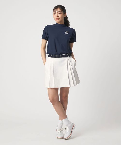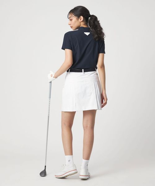 インナーパンツ一体型でスイング時もスカートが回らず、安心してプレーに集中できる一着です。