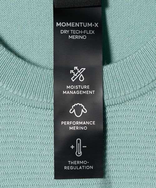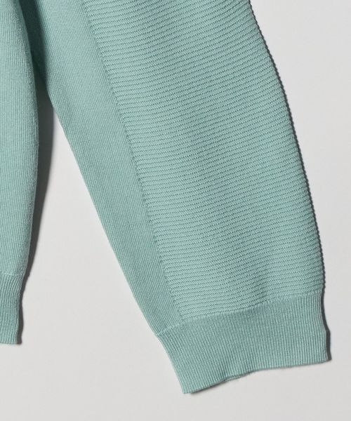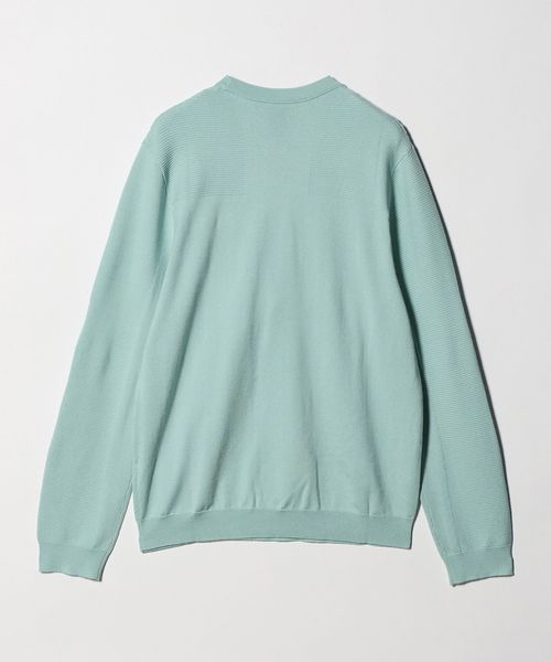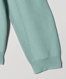 部分的に変えた編地と、胸元のさりげないロゴ使いがポイント。