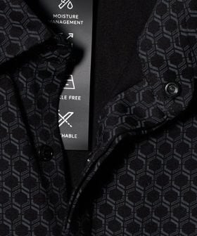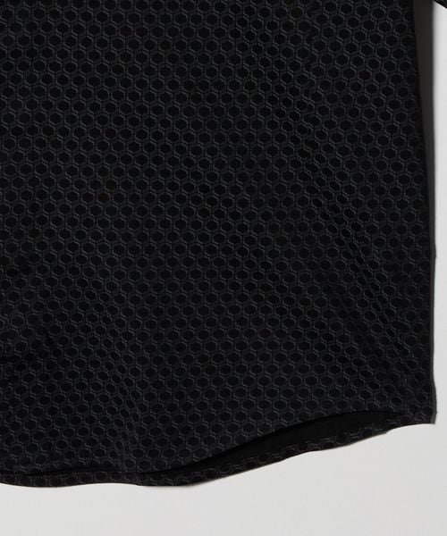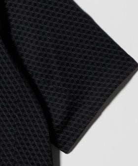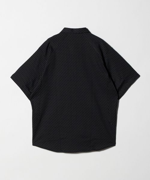 六角形の幾何学柄を配した、スポーティかつモダンな印象のショートスリーブシャツ。