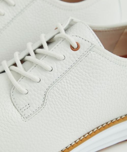 コールハーンの代表的なパターンであるオリジナルグランドシリーズから、ゴルフ用のトラクションパターンを使用し、ポストマンシューズを彷彿させるアッパーデザインでオーダーしたユナイテッドアローズ別注モデルのスパイクレスシューズ。