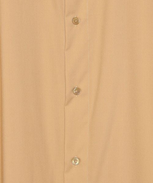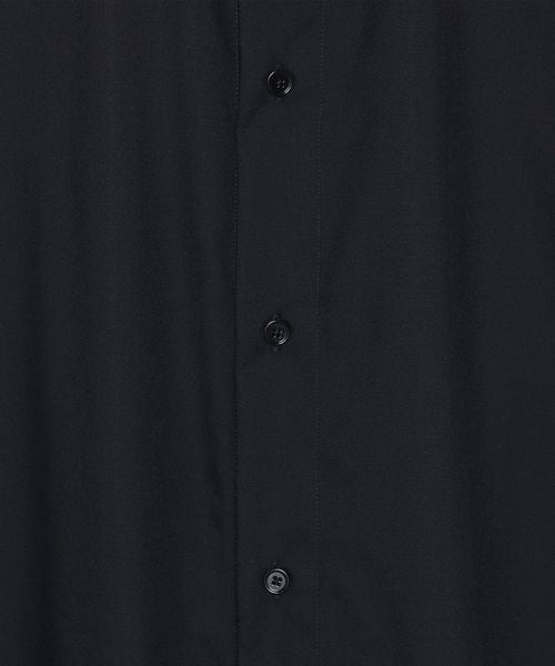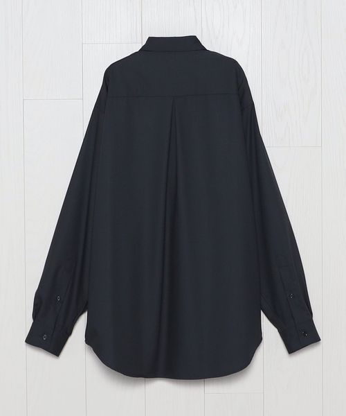 デザインはレギュラーカラーのオーバーサイズシルエットで仕立て、台襟を無くしてブラウスのような形状にすることで、首元に抜け感を生み出しエレガントな表情を演出。