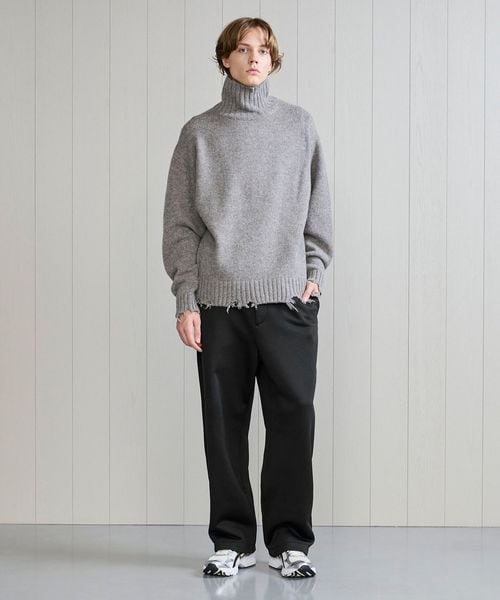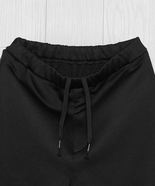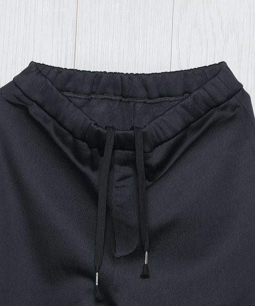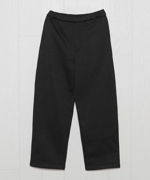 表面にブライトリーナイロン、裏面にブラッシュドコットンを使用したスウェットパンツです。裏地を使用せず起毛されたなめらかなコットンの肌触りで、着心地のよさにこだわったアイテム。弱めにアウトカーブをかけたサイドラインで、着用するとほぼストレート見えする弱めのテーパードシルエットが特徴です。ウエストはスピンドルのイージーデザイン。ほどよいリラックスムードを携えながら、秋冬のカジュアルスタイルにスマートに寄り添うおすすめの一着。