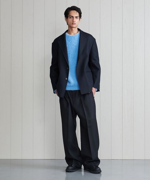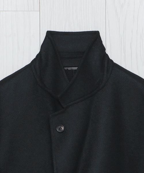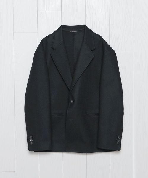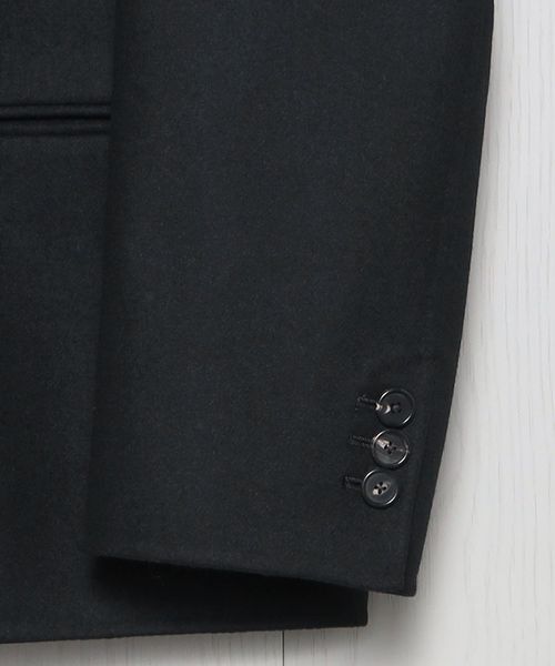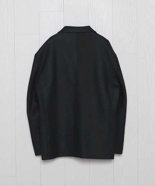 90年代初期のモードバランスを意識した、ボクシータイプのショートレングスジャケットです。上質なウール糸で織り上げたダブルフェイスメルトン使用しています。肩幅がやや広く、毛回しはコンパクトに設定し、ほどよい短丈で大人でも取り入れやすい表情に仕上げました。軽やかなリバー仕立てで、丁寧な縫製にこだわった一着。アウター代わりにもなる重厚感のあるムードが、秋冬の装いを豊かに彩ってくれます。