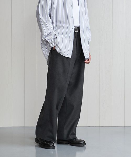 <H>フラノビーバー 1プリーツ ワイドパンツ