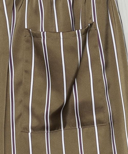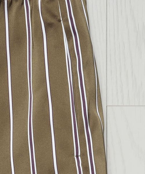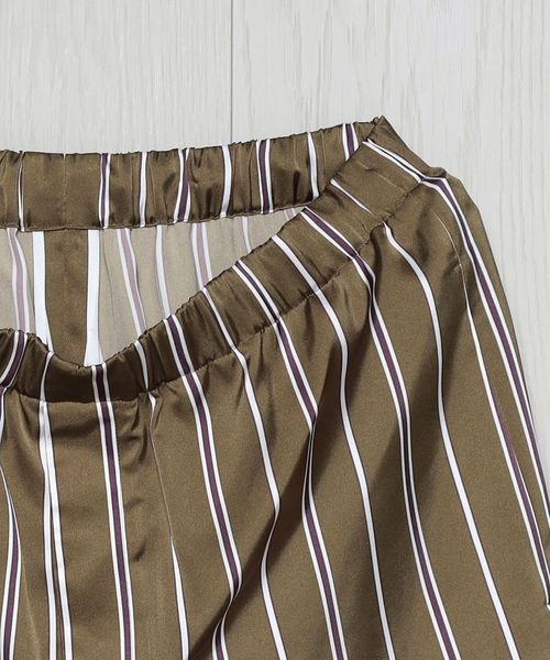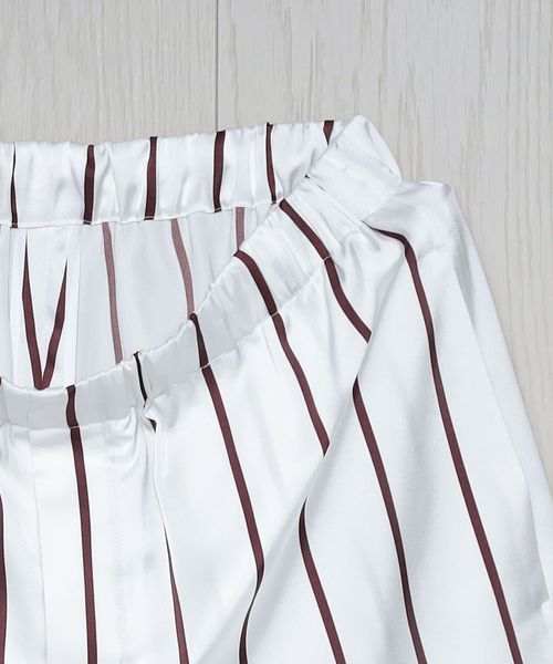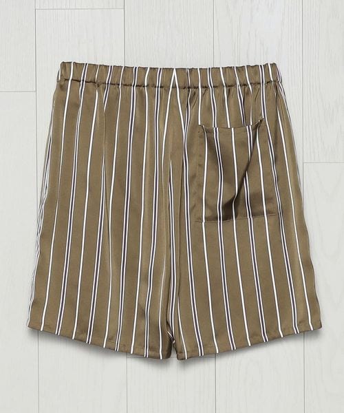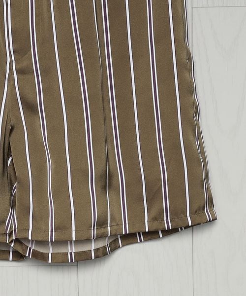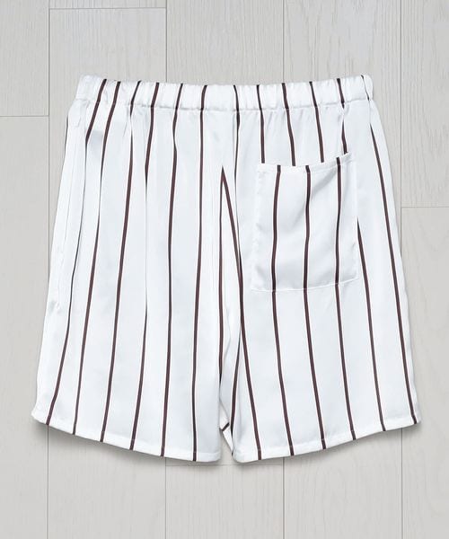 ポリエステル素材のライトサテンにストライプをプリントしたパジャマショートパンツです。