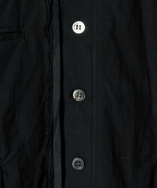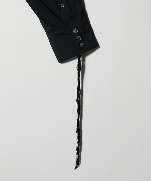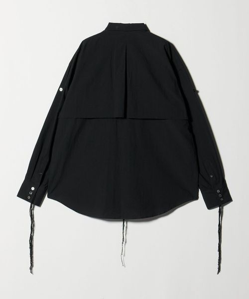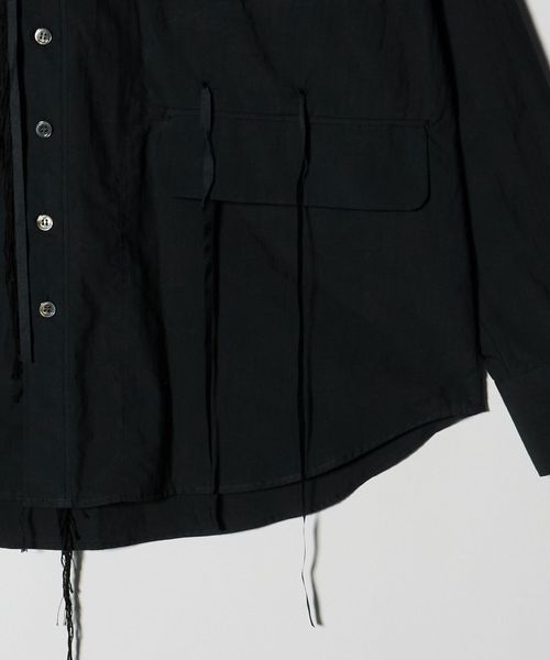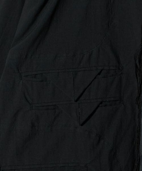 テープや、袖や裾からはみ出る生地といったデコラティブなディテールが施されている。