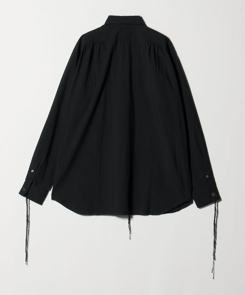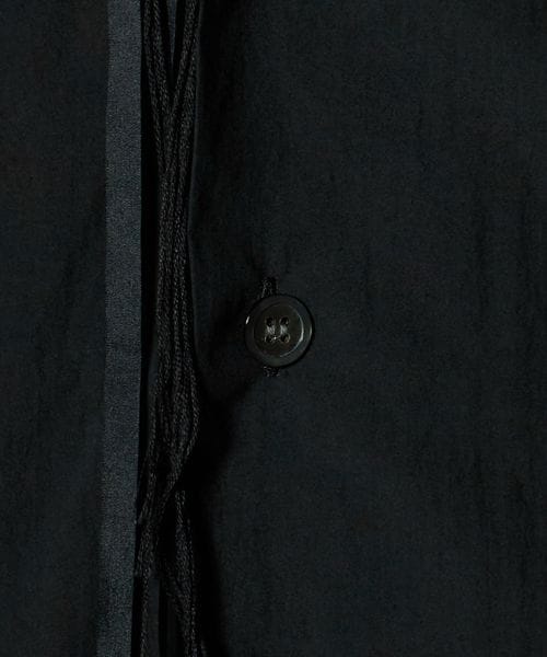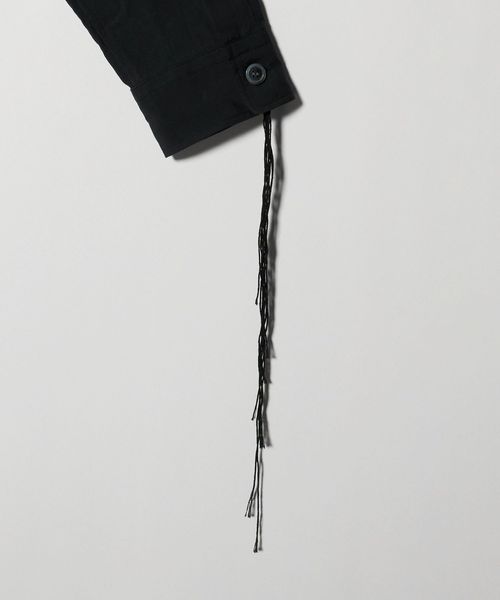 テープや、袖や裾からはみ出る生地といったデコラティブなディテールが施されている。