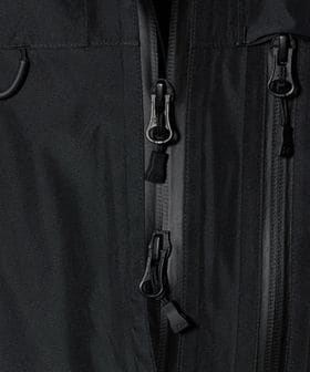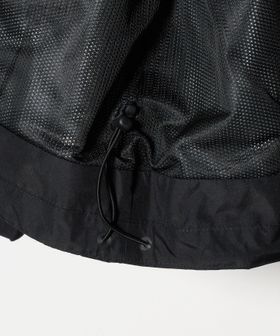 ミリタリーディテールを取り入れて作成したシェルパーカ。ミリタリーのディテールでもある前振りの袖がデザインアクセント。アクションプリーツを加え、腕の可動域を広げられるように考えられたデザイン。
